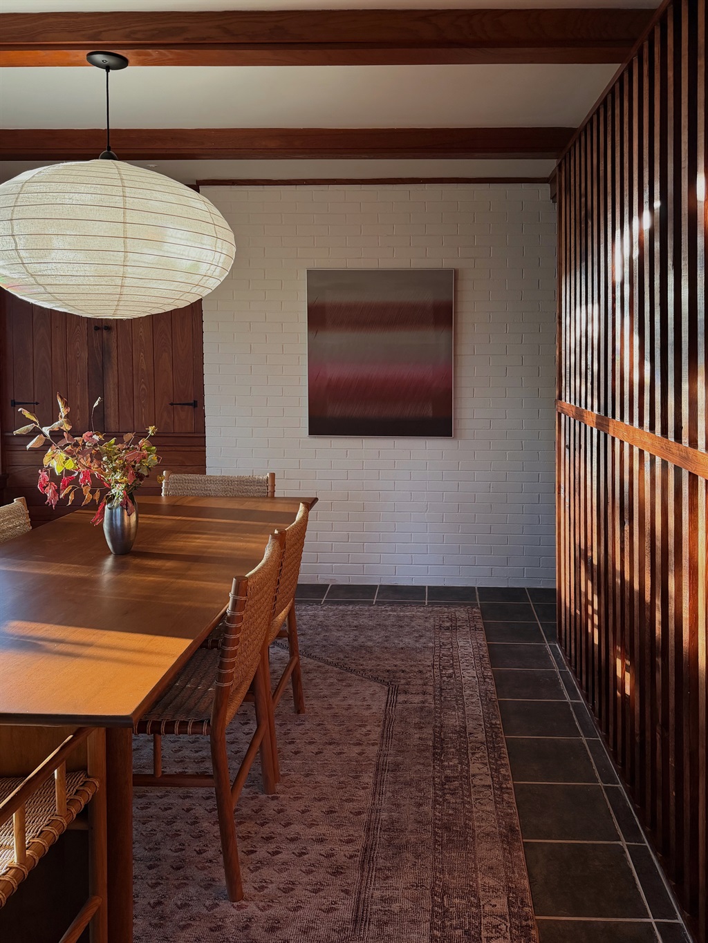 The dining room is designed for gathering — whether it’s a family dinner, a holiday meal, or a game night that stretches late into the evening. A table for six sits at the center, offering plenty of space to share good food and conversation.