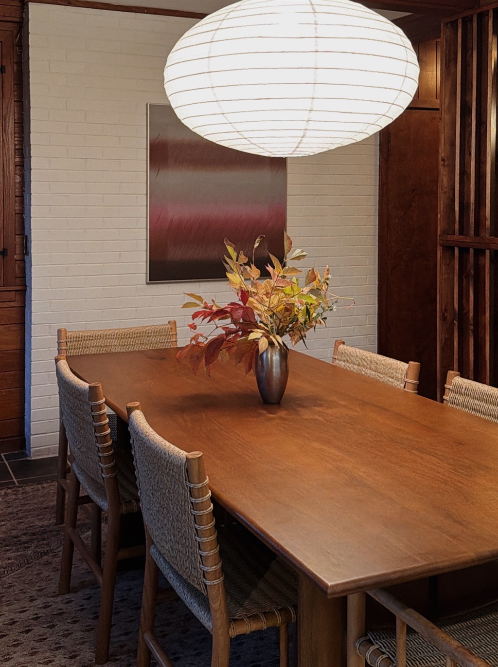Sunlight pours across the dining table, creating a bright and inviting place to gather.