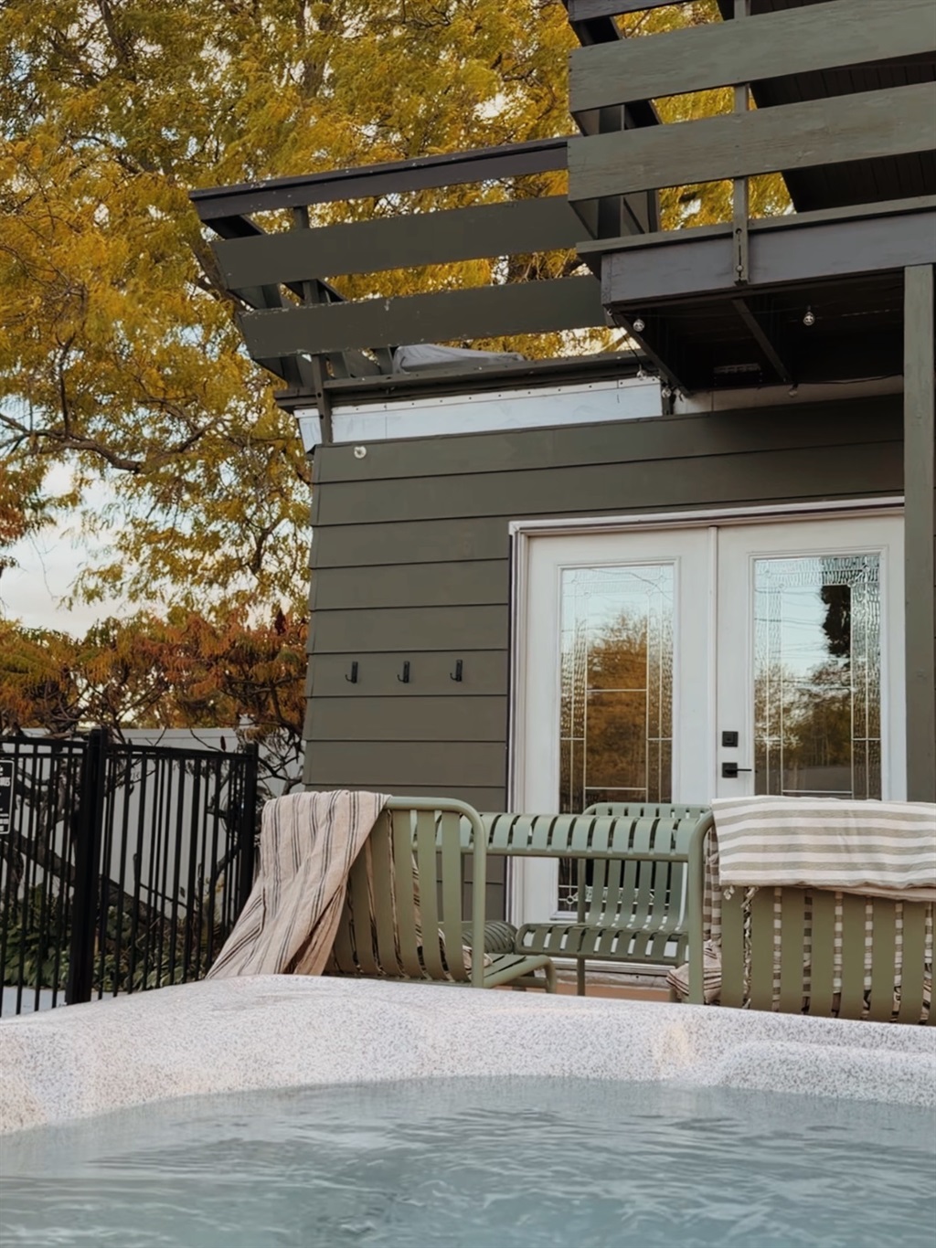 The backyard features a private hot tub, offering the perfect place to unwind and soak while surrounded by fresh air and peaceful views.